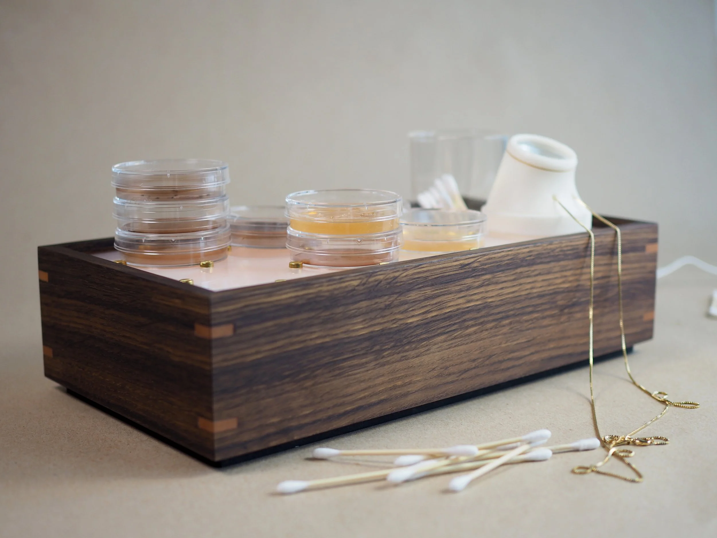 The material forms that self-tracking devices currently take reflect particular cultures around self-tracking. We explored alternative forms to speculate on other cultures of self-tracking. We present how we used experts on the relationship between the gut and the brain to inspire a design brief for a gut tracking device. This led to the design of Loupe and Lightbox, which externalise gut biota for closer examination, aesthetic appreciation, and reflection on the self. The device represents an example of self-tracking as a kind of cultivation - building a longer-term relationship with the self as something to be nurtured, tended to, and cared about.