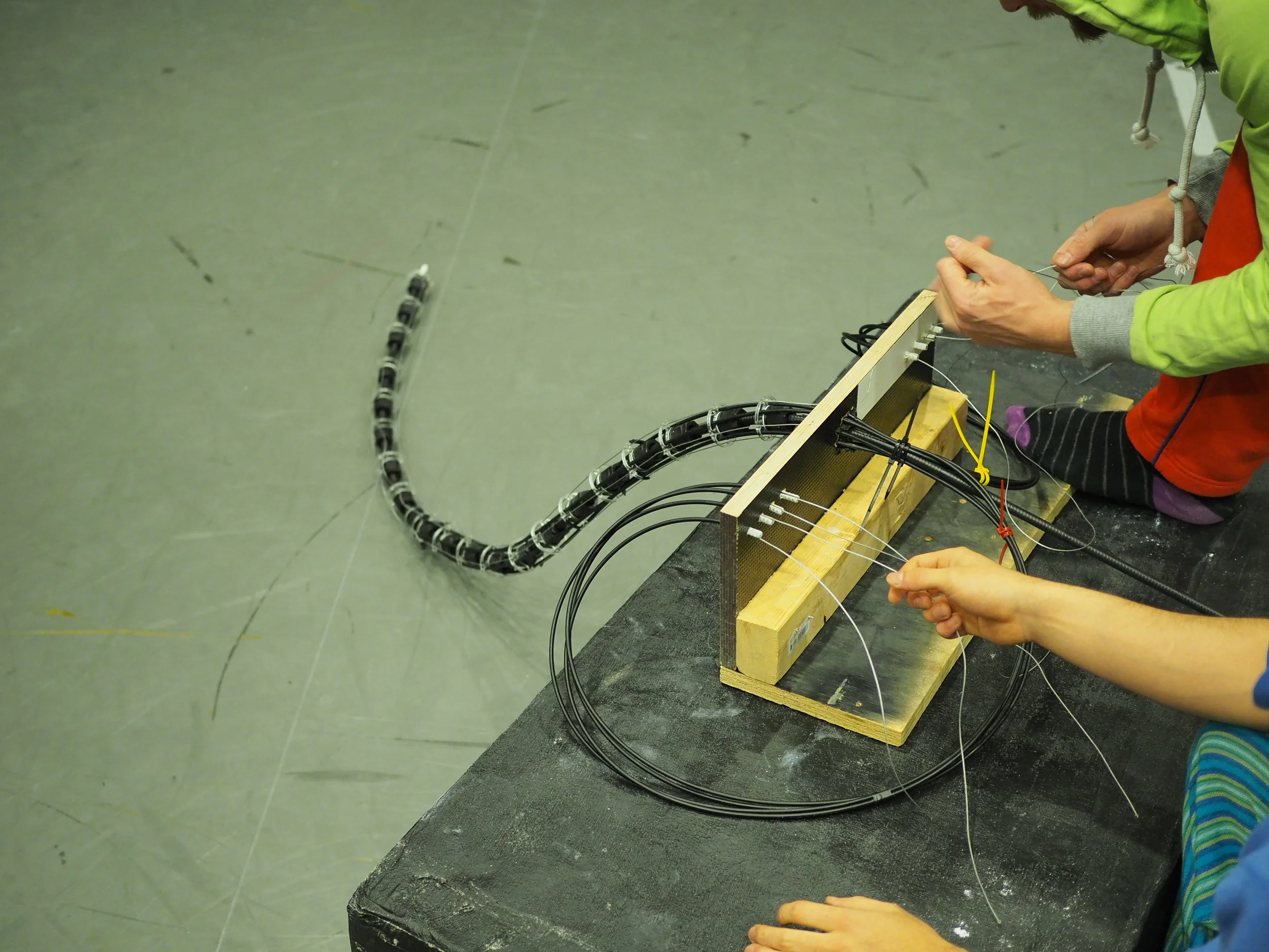 this short section of movable tentacle was one of the explorations developed in a two week period exploring material experiments and expressions for circus ropes with John-Paul Zaccarini. The period also included workshops with the Circus (MA) students at DOCH in Stockholm.